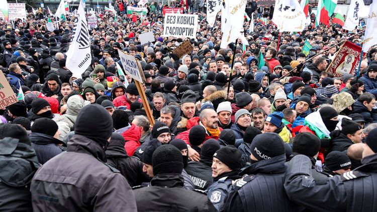 В среду, 12 января, в столице Болгарии Софии прошла массовая акция протеста против введения ковид-сертификатов и других мер борьбы с пандемией. Митингующие попытались взять штурмом здание парламента.