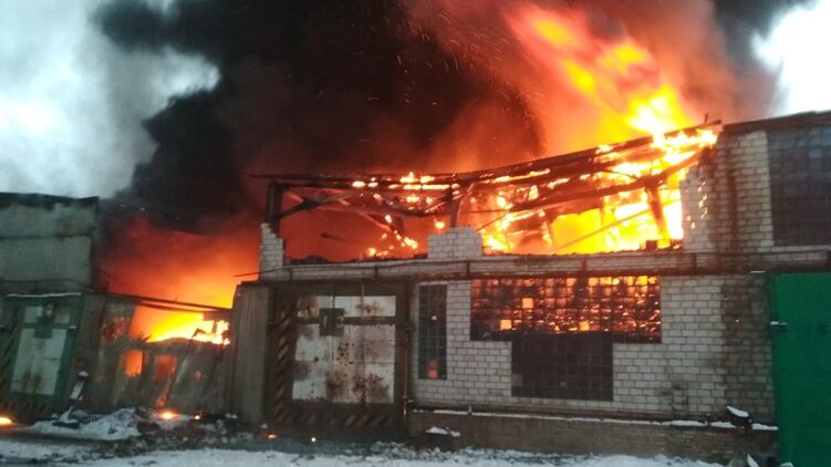 Под Киевом загорелся склад с автошинами. Площадь пожара достигла тысячи квадратов. Фото