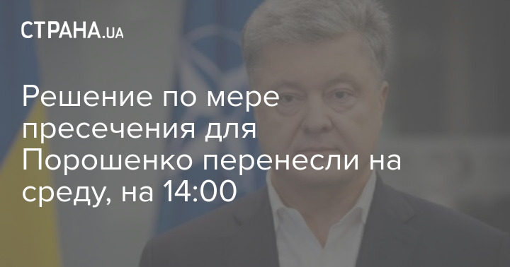 Секретарь судьи в Печерском районном суде Киева сообщил, что решение по мере пресечения для бывшего президента Украины и нынешнего лидера "Евросолидарности" Петра Порошенко, которого подозревают в государственной измене и содействии терроризму, огласят в среду, 19 января, в 14:00.