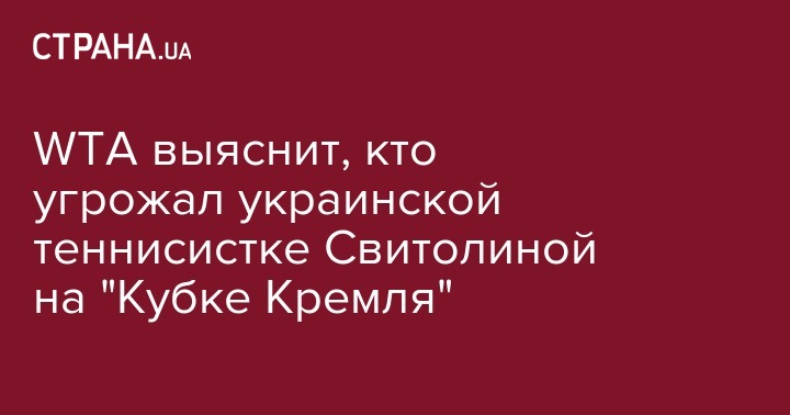 Всемирная ассоциация женского профессионального тенниса (WTA) проведет расследование по факту полученных первой ракеткой Украины Элиной Свитолиной угроз в Москве. Об этом сообщил российский журналист Дмитрий Шахов, который специализируется на освещении тенниса, передает Чемпион.