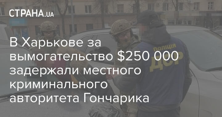 Криминальный босс одной из харьковских ОПГ Гончарик требовал у предпринимателя четверть миллиона долларов за выдуманный долг. Его задержали при получении транша в 150 тысяч долларов. Злоумышленнику грозит до 12 лет лишения свободы.