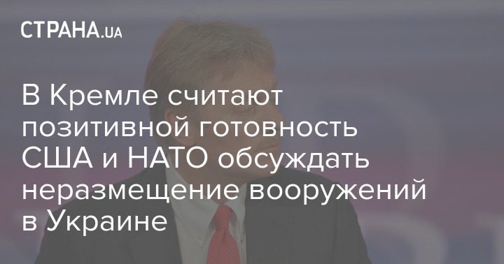В Кремле считают позитивной готовность США обсуждать неразмещение вооружений в Украине, о которой во время пресс-конференции 19 января заявил американский президент Джо Байден.
