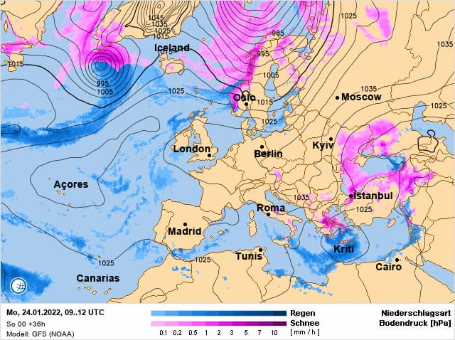 Снег 24 января выпадет на Востоке, в Центре и на Юге Украины. А вот на Севере и Западе страны будет без существенных осадков, хотя в Карпатах временами ожидаются осадки.