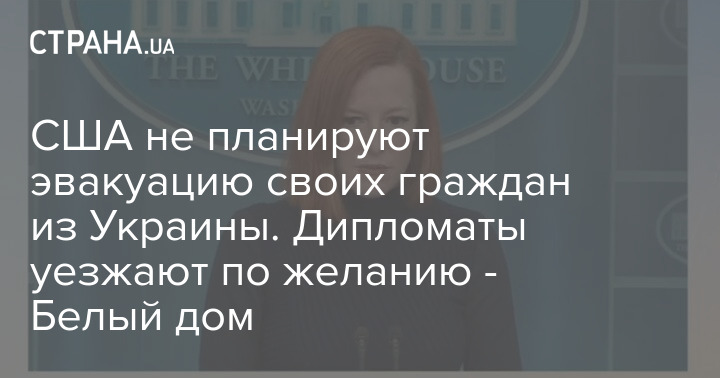 На днях Псаки заявляла, что Государственный департамент США планирует возможность эвакуации американских граждан из Украины, как и в отношении любой другой страны, где ухудшаются условия безопасности.