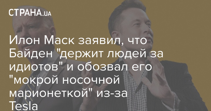 Илон Маск заявил, что Байден "держит людей за идиотов" и обозвал его "мокрой носочной марионеткой" из-за Tesla