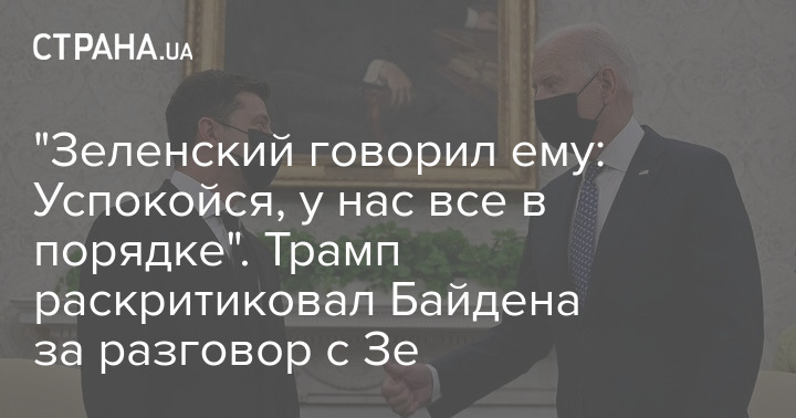"Президент Украины вроде бы говорил ему (Байдену): "Успокойся, просто успокойся. Я думаю, у нас все в порядке. Просто успокойся". Вы можете в это поверить?" – сказал Трамп.