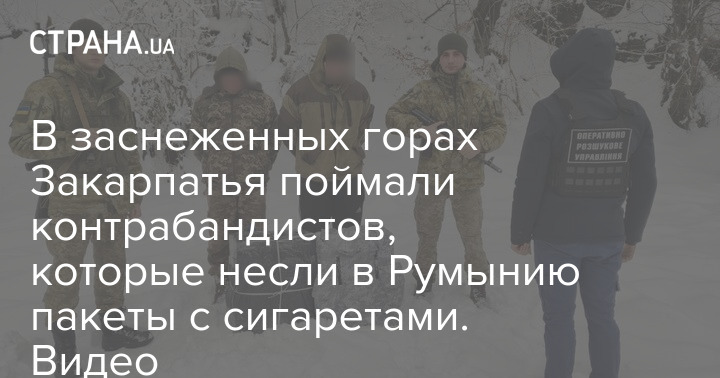В заснеженных горах Закарпатья поймали контрабандистов, которые несли в Румынию пакеты с сигаретами. Видео