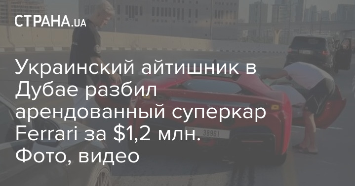 Руководитель IT-компании Traffic Devils украинец Александр Слобоженко в Дубае взял напрокат гибридный суперкар Ferrari SF90 Stradale и попал на нем в аварию.