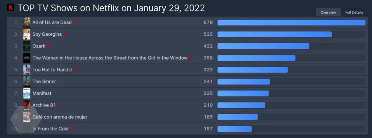 На следующий день после выхода хоррор попал на первое место в мировой топ-10 шоу на Netflix. До этого подобный успех был у "Игры в кальмара".