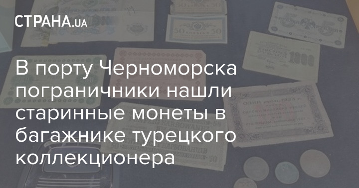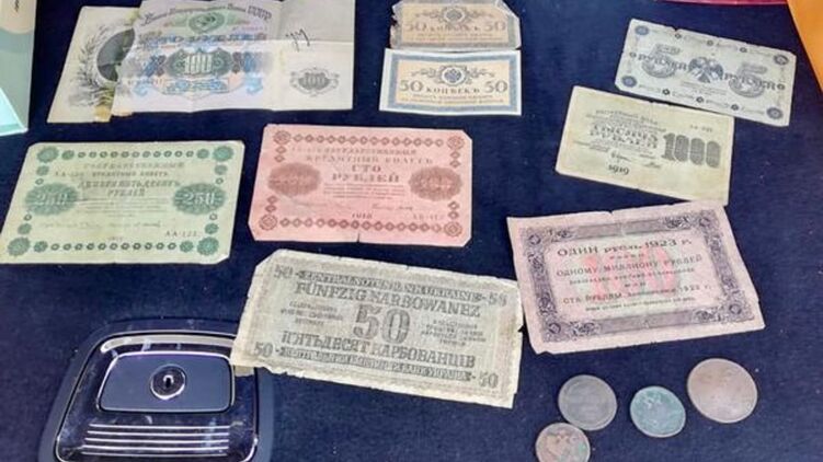В Черноморском порту пограничники во время совместного с Государственной таможенной службой Украины осмотра легковушки обнаружили старинные предметы. В багажном отделении нашли 11 банкнот разных стран, выпущенных в период с 1818 по 1947 год, и монеты 1814, 1819, 1833, 1866 годов.