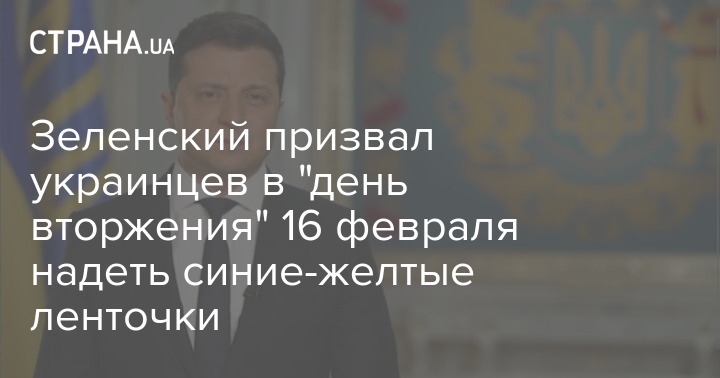 Зеленский призвал украинцев в "день вторжения" 16 февраля надеть синие-желтые ленточки