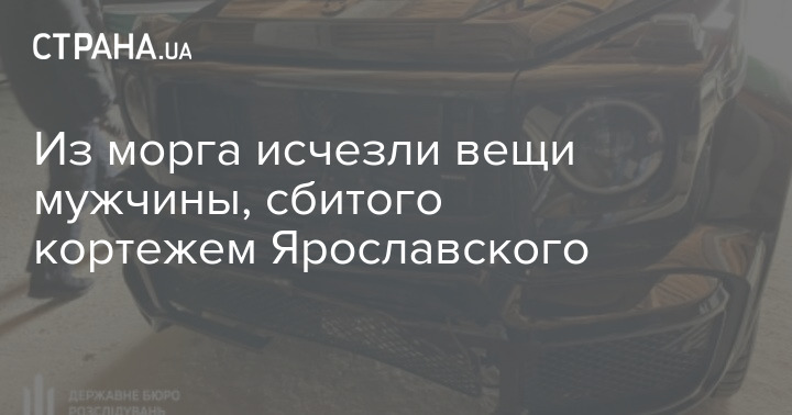 В деле о смертельном ДТП с участием кортежа харьковского бизнесмена Александра Ярославского, который после этого экстренно покинул Украину, появились новые подробности. Из морга исчезла одежда погибшего мужчины, которая  является вещественными доказательствами по открытому уголовному производству.