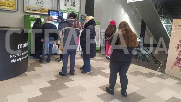 Очередь собралась у банкомата в Мегамаркете на ул. Антоновича, 50. Фото: Страна