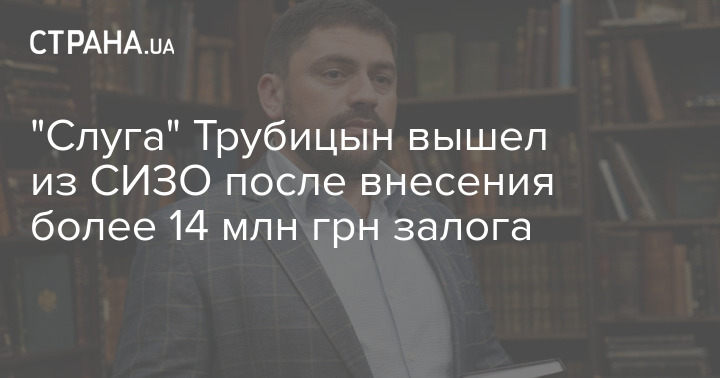 За депутата Киевского городского совета от "Слуги народа" Владислава Трубицына, которого разоблачили в получении взятки в 1,4 млн грн, внесли залог суммой более 14 млн грн. Он вышел из СИЗО.