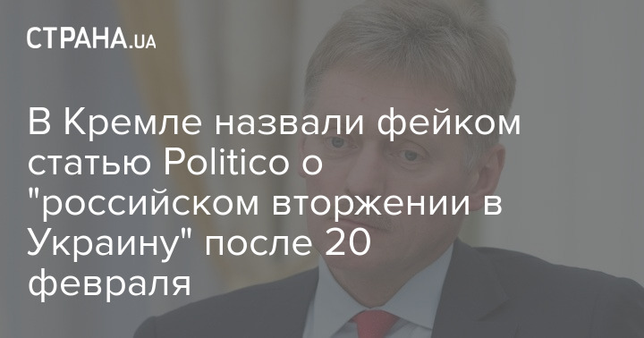 Спикер Кремля Дмитрий Песков назвал очередным фейком утверждения Politico о "российском вторжении в Украину" после 20 февраля.