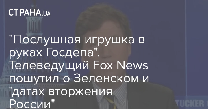 Американский политический обозреватель Такер Карлсон в своей передаче "Tucker Carlson Tonight" на Fox News назвал президента Украины Владимира Зеленского "марионеткой Байдена". Он сказал, что в нашей стране нет и никогда не было демократии и пошутил об анонсированном на 16 февраля "российском вторжении", которое так и не произошло.