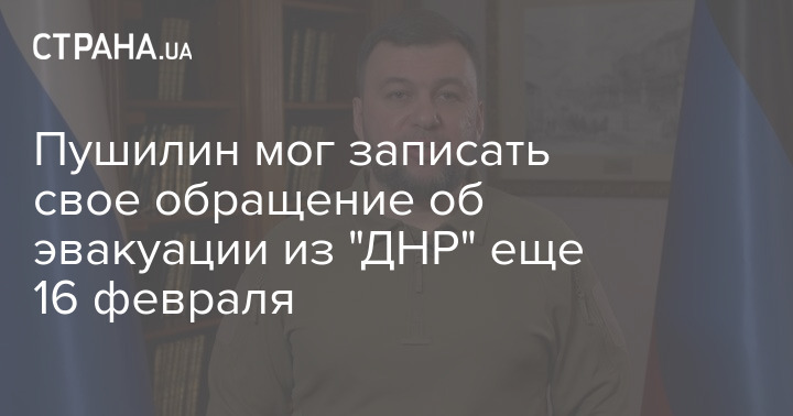 Видеофайл сегодняшнего обращения "главы ДНР" Дениса Пушилина, в котором он объявил о массовой эвакуации населения "республики" в Россию из-за того, что в ближайшее время ВСУ дадут приказ о наступлении на Донбассе, был создан еще 16 февраля, то есть позавчера.
