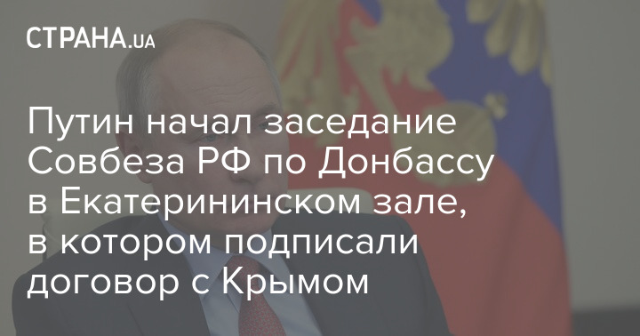 Путин начал заседание Совбеза РФ по Донбассу в Екатерининском зале, в котором подписали договор с Крымом