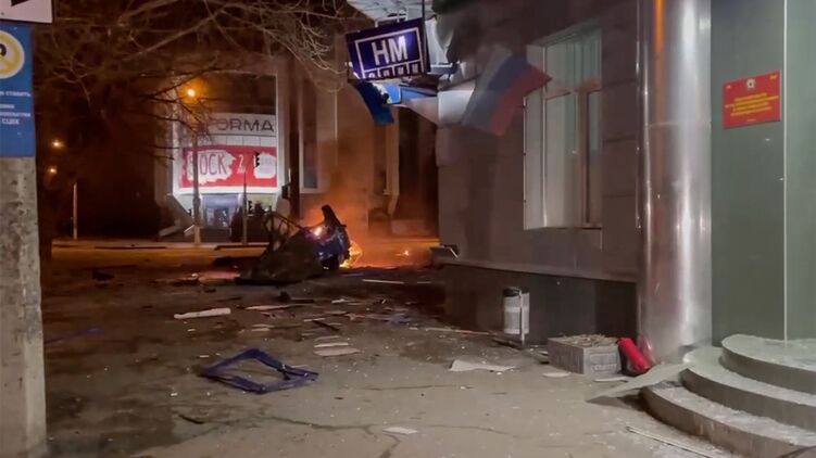 В Луганске у здания представительства "ЛНР" в СЦКК произошел взрыв. Фото: Скриншот из видео