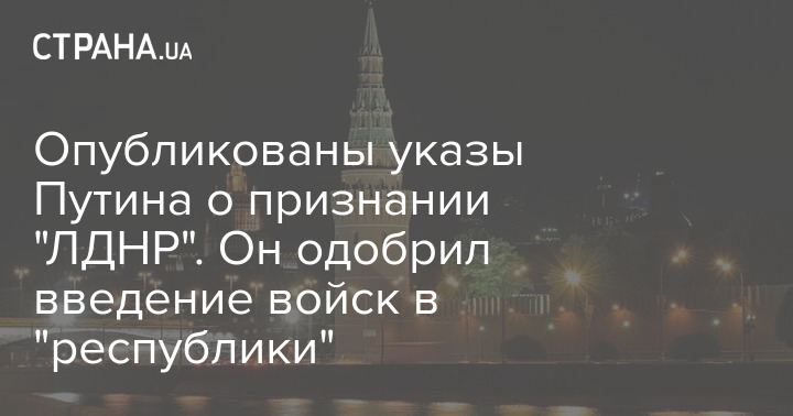 Опубликованы указы Путина о признании "ЛДНР". Он одобрил введение войск в "республики".