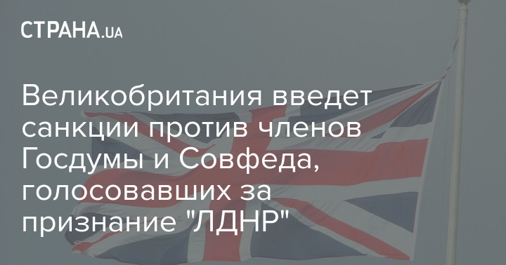 "Великобритания наложит санкции на тех членов российской Госдумы и Совета Федерации, которые проголосовали за признание независимости Донецка и Луганска, что является грубым нарушением территориального суверенитета Украины", — говорится в сообщении.