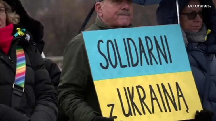 Например, сотни поляков вышли на площадь, чтобы выразить протест против возможного вторжения России. Участники акции размахивали украинскими, польскими, а также европейскими флагами, несли плакаты в поддержку Украины.