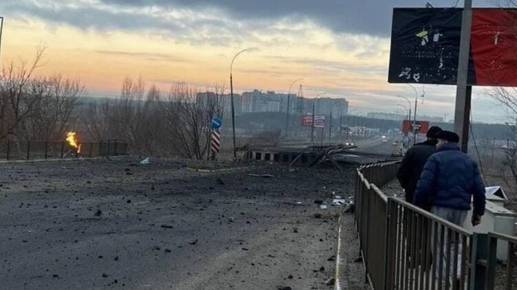 Под Иванковым (70 километров к северо-западу от Киева) также взорвали мост через речку Тетерев.