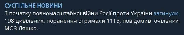 14:04 Кличко о ситуации в городе. "Киев продолжает держать оборону, российских войск в столице нет. Но наши военные, правоохранители, тероборона продолжают выявлять и обезвреживать диверсантов. Ночью были столкновения и перестрелки. Уничтожили несколько ДРГ. Именно ради вашей безопасности мы ввели комендантский час до завтрашнего утра. Не выходите, пожалуйста, на улицы. Выйти можно только если по сигналу воздушной тревоги вы идёте в укрытие. Россия обстреливает жилые кварталы столицы Украины. Россия убивает украинцев по всей Украине. В Киеве с начала атаки 24 февраля погибли 9 мирных жителей. В том числе один ребенок, 4 неизвестных лица и 18 военных теробороны. Ранены 106 людей. Из них - 47 гражданских, в частности, трое детей..."