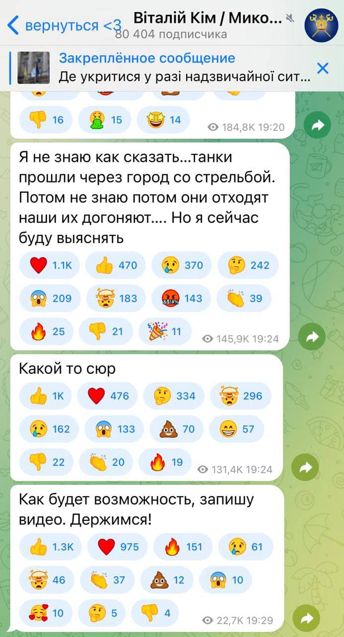 13:08 Обращение доктора Комаровского к россиянам и белорусам. "Знаете, с чего начинается утро в Украине? С того, что мы обзваниваем всех, кого не видели ночью, от кого весточки не было, это связь между бомбоубежищами, лесами, погребами. Спрашиваем, живы-нет? Когда долго не берут трубку, бьемся в истерике. Только что успокаивал невестку. Она разговаривала по телефону с родным дедом из Брянска. Он ей рассказывал, что надо еще немного потерпеть и нас "доосвободят". Вы знаете, в Харькове горят "Тигры". Знаете, кто такие "Тигры"? Эдакие машинки русской армии, освободители, @лядь, приехали. Они горят классно. Наши делают коктейли специальные, называются "бандеровское" смузи... У нас война!