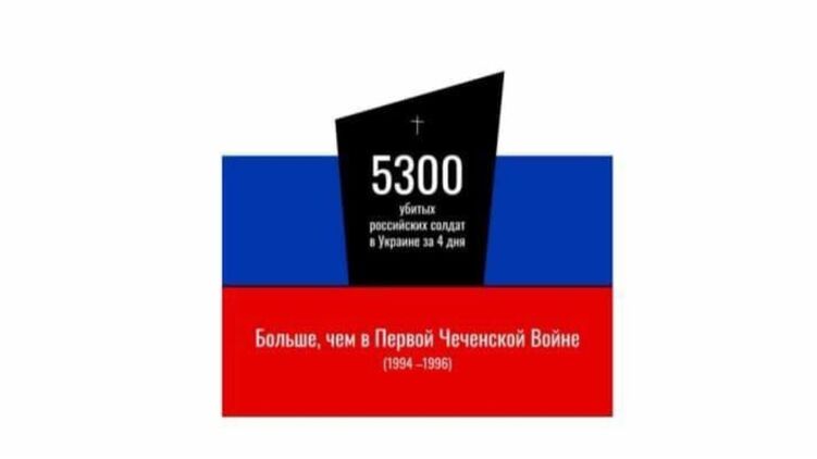 "5300 убитых российских солдат в Украине за 4 дня. Больше, чем в Первой Чеченской Войне (1994-1996)", - говорится в сообщении.