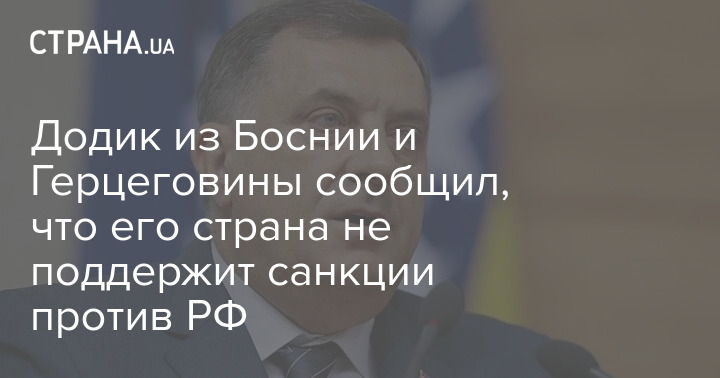 Додик из Боснии и Герцеговины сообщил, что его страна не поддержит санкции против РФ