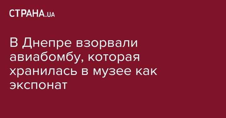 В Днепре обезвредили 500-килограммовую авиабомбу времен Второй мировой войны, которая была экспонатом музея. Об этом 27 октября сообщили в областном управлении Государственной службы по чрезвычайным ситуациям, передает Радио Свобода.