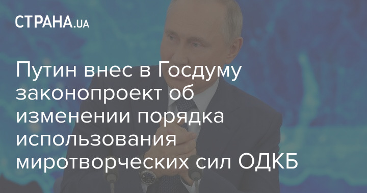 Владимир Путин внес в Госдуму РФ законопроект о внесении корректировок в Соглашение о миротворческой деятельности ОДКБ.