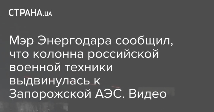 Мэр Энергодара сообщил, что колонна российской военной техники выдвинулась к Запорожской АЭС. Видео