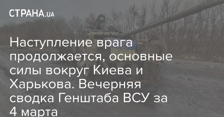 Наступление врага продолжается, основные силы вокруг Киева и Харькова. Вечерняя сводка Генштаба ВСУ за 4 марта
