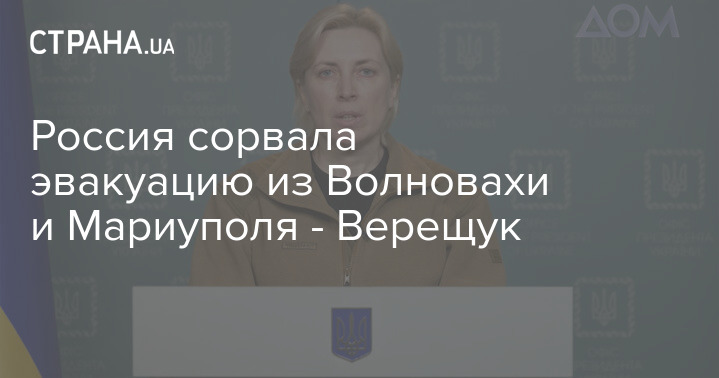 Министр по вопросам реинтеграции временно оккупированных территорий Украины Ирина Верещук заявила, что Российская Федерация сорвала договоренности по "зеленым коридорам" и эвакуации из Волновахи и Мариуполя. Об этом она заявила в ходе нового обращения.