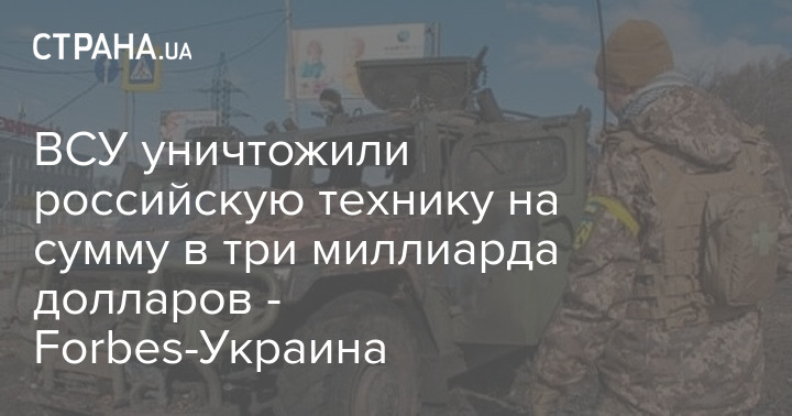 Журнал Forbes-Украина подсчитал, что Вооруженные силы Украины (ВСУ) уничтожили техники врага на сумму в три миллиарда долларов.