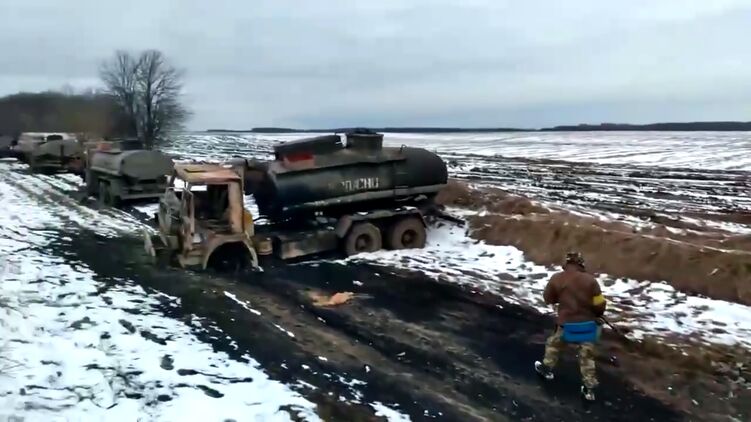 В понедельник, 7 марта, под Прилуками в Черниговской области украинские военные уничтожили колонну российских бензовозов.