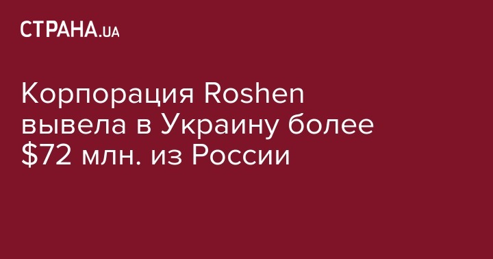 Корпорация Roshen вывела в Украину более $72 млн. из России