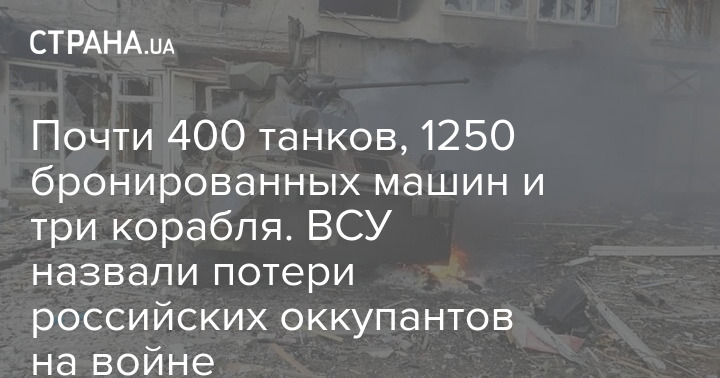 Почти 400 танков, 1250 бронированных машин и три корабля. ВСУ назвали потери российских оккупантов на войне