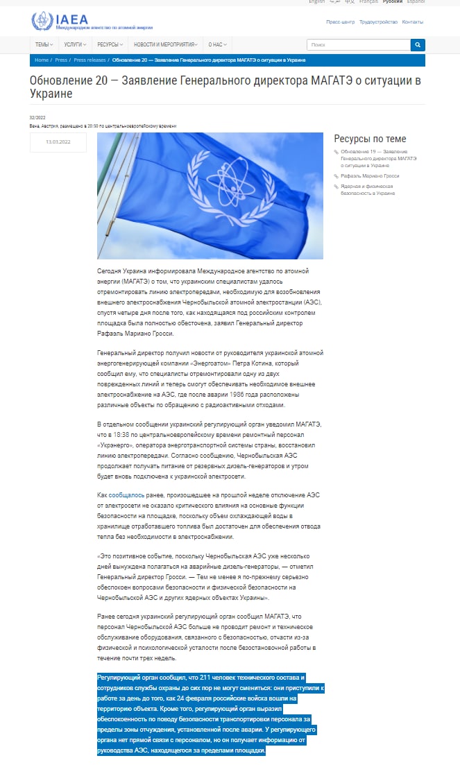Напомним, 9 марта Чернобыльская АЭС была полностью обесточена.