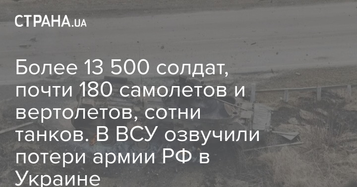 Более 13 500 солдат, почти 180 самолетов и вертолетов, сотни танков. В ВСУ озвучили потери армии РФ в Украине