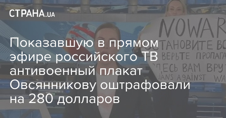 Бывшую сотрудницу "Первого" канала РФ Марину Овсянникову, которая вышла к камере с антивоенным плакатом, оштрафовали на 30 тысяч рублей.