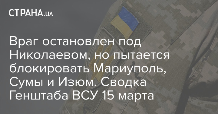 Враг остановлен под Николаевом, но пытается блокировать Мариуполь, Сумы и Изюм. Сводка Генштаба ВСУ 15 марта