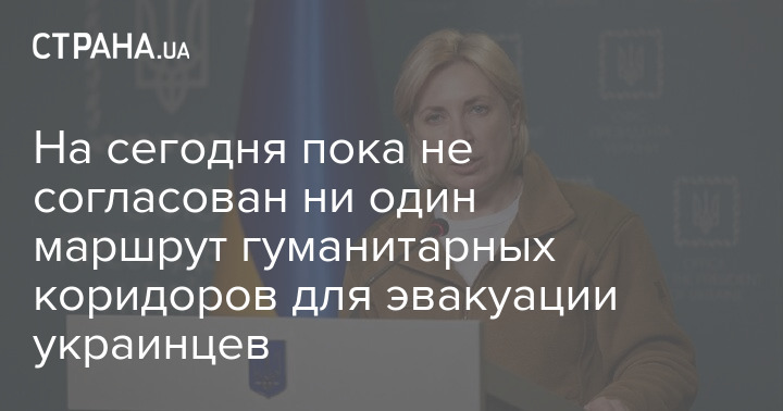 Министр по вопросам реинтеграции временно оккупированных территорий Украины Ирина Верещук рассказала о работе гуманитарных коридоров на территории Украины в среду, 16 марта. По ее словам, ни один маршрут пока не согласован.