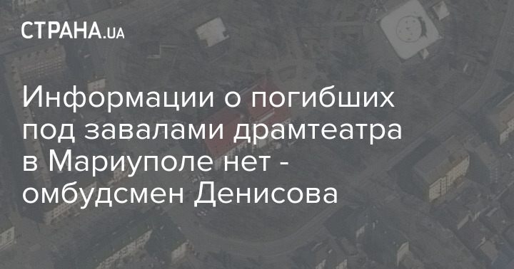 Омбудсмен Людмила Денисова сообщила, что информации о погибших и раненых под завалами драматического театра в Мариуполе, где прятались люди с детьми, сейчас нет.