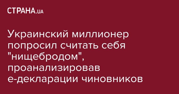 "После опубликования электронных деклараций украинских чиновников все участники списка Forbes почувствовали себя лохами! С этой минуты прошу считать меня нищебродом! У меня нет наличных миллионов, нет вертолётов, нет коллекции часов, и даже, удивитесь, нет личной церкви, внесённой в декларацию одним из депутатов", - пишет Черняк.