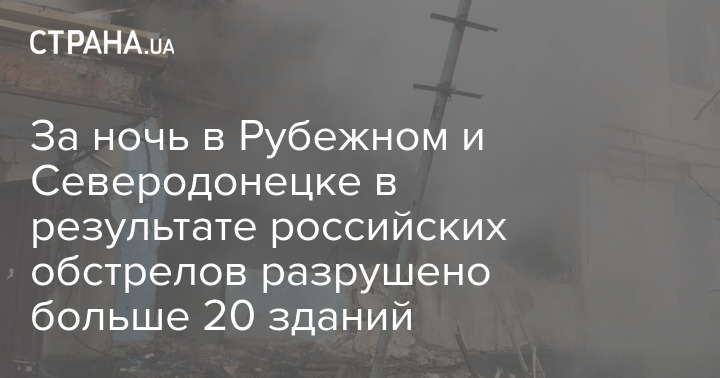 Губернатор Луганской области Сергей Гайдай сообщает, что за эту ночь в результате российских обстрелов разрушено более 20 строений в Рубежном и Северодонецке.