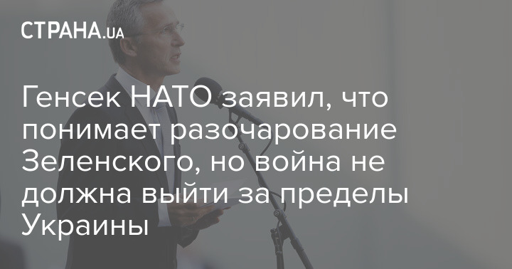 Генсек НАТО Йенс Столтенберг заявил, что понимает разочарование президента Украины Владимира Зеленского, однако при этом в очередной раз повторил, что конфликт, по мнению альянса, не должен выйти за пределы Украины.
