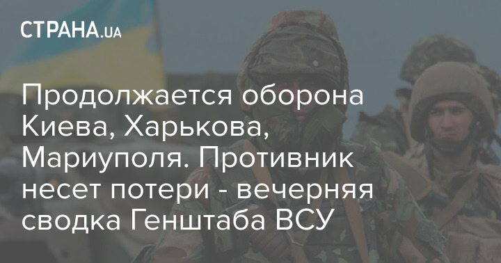 Генеральный штаб Вооруженных сил Украины опубликовал оперативную сводку по состоянию на 18:00 в субботу, 19 марта. По информации Генштаба, защитники Украины надежно удерживают рубежи обороны, сосредоточив главные усилия вокруг стратегически важных городов – Киева, Чернигова, Харькова, Мариуполя, Николаева, и вынуждают врага отказаться от продолжения наступления.